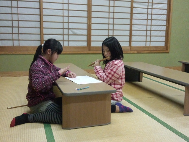 | 2014/03/25 しの笛隊練習会 2014.3.25 しの笛隊練習会 しの笛のレギュラーテストを初めて受ける3年生メンバー、 わかな先生(小4年)に教えてもらう3年生メンバー、 みくちゃん(小3年)に教えてもらう2年生メンバー |