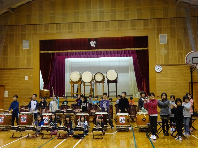 | 2014/04/02 いよいよ26年度がスタートです。 今日は、平成26年度打吹童子ばやし第23期のスタートです。 写真を撮り忘れました。 入団予定の新1年生さんが、見学に来ていました。 ゆらちゃんとわかなちゃんは、一緒に基本練習をしてみました。なかなかやるじゃないか! 新2年生メンバーは刺激を受けて、頑張りました。 基本打ちから、リズム遊びをしたのち、「長谷寺の絵馬伝説」「童子01」「打吹童子ばやし」を演奏してみました。 つづいて、レギュラー以外の新3年生以下による「童子01」、新4年生以下のレギュラーによる「長谷寺の絵馬伝説」、5,6年生による「打吹童子ばやし」3章の宮太鼓1のソロ部分を演奏してみました。 向かって右をAチーム 、向かって左を Bチーム、A対Bでチーム戦をしました。 少人数での演奏ですから、演奏にごまかしがききません。 今後の練習目標が見えてきました。 第23期打吹童子ばやし結団式は、4月23日(水)午後6時からです。 練習会場は、4月16日(水)から、倉吉市文化活動センターになります。 4月5日(土)の夕方に第22期の6年生を送る会をします。6年生6人が卒業です。 第23期の新団員は、10人くらいになりそうです。 ますます賑やかくなります。 教える側も結構体力が入りますよ。