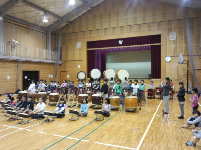 | 2013/11/07 定例練習会 11月10日に向けて 定例練習会 今日は、向山保育園の先生方にも宴の踊りを見学していただきました。 向山保育園出身の子ども達にとっては、懐かしい先生方の見学で気合が入りました。 まずはじめに、基本打ちで長谷寺のリズムを打ちました。しの笛隊も加わって演奏しました。 なかなかいいリズムが刻まれてきたので、2章、3章を全員で通してみました。また、上達しましたね。 続いて、見学の保育園の先生のために宴の踊りを2回しました。切れ味のある踊りができました。 11月10日の「鳥取県和太鼓連盟コンサート」の演奏の流れで、やぐらのソロから宴までを通してみました。 もう一度、今度は、鼓魂から宴までを通してみました。 最後に、11月17日の「倉吉子どもハッケン伝」での「新・八犬伝」戦いの章での八犬士の配役試合をしました。 山根りょう君(4年生) 対 倉光ひゅうま君 で「仁」の犬江親兵衛を競いました。 どっちもが甲乙決め難い演奏をしました。勝敗は保留です。 とりあえず、「新・八犬伝」バレエとのコラボ演奏バージョンのテンポでの演奏を通してみました。 明日、木曜日にLEGEN童の練習時間の前1時間を打吹童子ばやしの最終練習にしたので、宿題を明日に残して終了しました。 01の保護者のみなさんに、宴の鈴を子ども達の練習中に15セット作ってもらいました。あっという間に出来上がりました。また、一つのことで保護者同士が仲間になりました。 3・4・5・6年生の保護者の皆様には、宴の衣装制作の段取をしていただきました。ありがとうございます。出来上りが楽しみな衣装です。ありがとうございます。 |