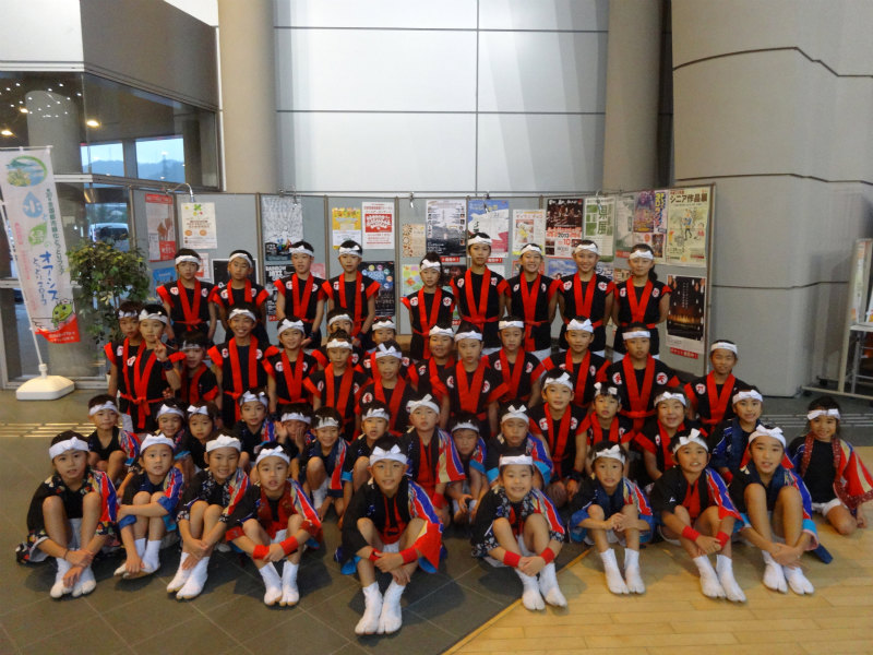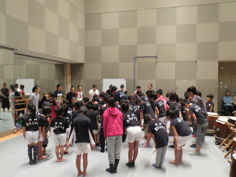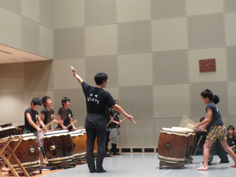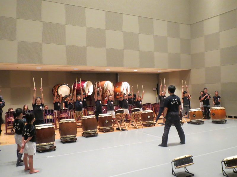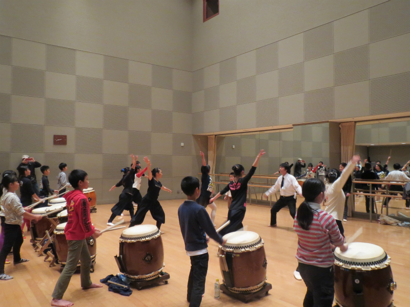 | 2013/11/10 鳥取県和太鼓連盟コンサートでゲスト演奏 11月10日(日)倉吉未来中心大ホールにおいて「鳥取県和太鼓連盟コンサート」でゲスト演奏です。 午前11時30分より、30分間リハーサル時間をもらいました。 「うたげ」の立ち位置の確認をして、13分間の演奏時間を通して演奏しました。 楽屋で昼食をとって、しばらく休憩の後に着替えをして待機です。 出演時間は2時40分・・・40分前、いよいよ本番に向けてのモードに切り替えです。 団長は吉田さん、リーダーは門脇さん、副リーダーは谷口さん、山根さん、やぐらマイスターは林くん 子ども達が団員の気持ちを一つにしていきます。 「気持ちを一つに感動を与える演奏をしよう。」「しっかり声を出そう。」 さあ、いよいよ本番です。気持ちも十分に出来上がりました。 「存分に楽しんでおいで!」 今回は、「鼓魂2013組曲」です。17日の「倉吉子どもハッケン伝」で披露する曲です。 まずは、締め太鼓6人衆による「鼓魂」 続いて「オーライ!」やぐら3人衆の演奏です。 続いて 「長谷寺の絵馬伝説」→MATSURI→打吹童子ばやし3章→「うたげ」 22期48名(1名欠席)が舞台に立ちました。 01メンバー(1年生)野島あいさん、藤井みゆうさん、本田かけるくん (2年生)木下こうきくん、向井しおんくん が太鼓でステージに立ちました。 たくさんの打吹童子ばやしファンの皆さんが駆けつけてくださいました。 締め太鼓6人衆の「鼓魂」は22期メンバー初公開。 しの笛リーダーの山根みゆさんが、締め太鼓・・・それも「鼓魂」で初演奏です。 やぐら3人衆のやぐらソロでは、林らいやくんが素晴らしい演奏を見せつけました。会場から思わず拍手が湧き上がりました。 22期レギュラーの心が一つになった演奏で、会場も大興奮です。 「うたげ」は、01メンバーが踊りで和やかな雰囲気にしました。 閉会後は、アトリウムに移動してお客様にお礼を言いました。 たくさんの方から、「こんなに小さい子が打ってたんだね。感動した。」「良かったよ〜」「来週も楽しみにしているよ〜」 たくさんの称賛の声をかけていただきました。 |
