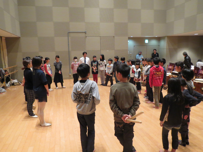 | 2013/11/10 「倉吉子どもハッケン伝」 うたげリハーサル 11月10日午前9時30分より 未来中心リハーサル室で、鳥取シンセオーケストラの皆さんとリトルバレリーナの皆さんと 「うたげ」の合同リハーサルです。 「うたげ」の太鼓の演奏は、 Aメロは、7を→5へ Bメロは、5を→3の力で演奏するように変更です。 優しく打つとキレが無くなってしまいますね。がんばれーみんな。 今回は、かなり演奏力が鍛えられますね。 ほんとの音量は、16日に調整するということで、今日のリハでは、5の3で演奏終了です。 鳥取シンセオーケストラの演奏も4日に聞いた時より素晴らしく表情ができていて、とってもドラマチックになっていました。 だんだん、わくわくになってきました。 |