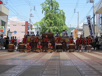 | 2010/07/31 天女伝説まつりで演奏しました。 7時15分より演奏をしました。 たくさんの方に聞いていただきました。 今日は一日 MATSURI(5分)→打吹童子ばやし(15分)→宴(3分) の流れで演奏しました。 レギュラー組の集中練習会でしたね。 来週は打吹まつりです。またここで演奏します。 「宴」では自然に手拍子がわきます。今日の三公演のどの会場でもそうでしたね。 7月最後の日でしたが、打吹童子ばやしの夏はようやく半分終わったところです。 8月は、7日打吹まつり→8日とっとり伝統芸能まつり→14日しゃんしゃん祭りと続きます。 みんなが体調管理して、打吹童子ばやしの元気をみなさんに届けたいですね。 |