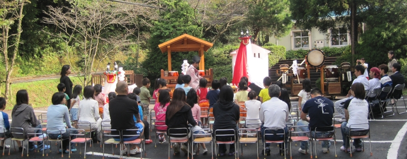 | 2009/10/03 山車の安全祈願をしました。 向山保育園の駐車場に打吹童子ばやし山車2台と向山新鮮組の山車2台が集結。 小鴨神社の井上宮司さんに山車の安全祈願と日本のまつり成功祈願をしていただきました。 打吹童子ばやしから保護者会長さん、祭り総隊長さん、祭り副隊長さん、太鼓隊の隊長・副隊長のお母さん、団員が参加しました。 |