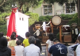 | 2009/10/03 中学生組の練習会に現役も合流して練習をしました。 午後4時から7時30分まで中学生組の練習会をしました。5時からは雷鳴チーム・踊り隊も合流して練習しました。 最初に日本のまつりのパレードのリズムを打ってから、宴をしました。踊りの振りの腕の動かし方、足の運び方など間違いがあれば止めて確認。繰り返し繰り返し練習しました。 休憩を取ってから、中学生組は笛と担ぎ太鼓に分かれて、祭りパレードの曲を演奏しました。踊り隊も盛り上げました。 パレード曲のエンディングのタイミングを練習しました。 休憩を取ってから、新・八犬伝を練習しました。 八犬士の章では、テンポを上げすぎないこと!戦いの章のテンポになってしまわないように!と確認しました。出だしのふち打ちの仕方の確認をしました。 雷鳴組の立ち方・座り方・演奏表現をチェックしました。 演奏中の目力など・・・ここは戦いのシーンです。相手(敵)がいることを意識して演奏しよう。まだまだJRでピクニックの顔つき・体の動きです。ここは緊張感のいるところですね。 宴では、演奏表現を理解しました。雷鳴組パートは体を小さくしたり大きくしたり表現する場面。自然とバチ先に力がこもるね。 戦いの章が終わるまでは目力を含め緊張感のある演奏ですが、戦いの章終了→宴では息を吐くくらい体の力を抜いて、祭りのパレードのように楽しく、会場のお客様と一体になれるような演奏をしよう。踊りも見てくださいではなく、お客様と一体になれるような気持ちの持ち方から理解しました。 お母さんたちは、5時から向山保育園の駐車場でパレードの担ぎ太鼓の練習をしました。 7時過ぎにお迎えにこられたので、パレード曲はドンドン♪わっしょい!の繰り返しから、笛のメロきっかけで曲がスタートすることとエンディングがあることを伝えました。子ども達のパレード演奏を聴いてもらいました。 最後に宴の仕上がりを見てもらいました。 梨花ホールでトラブル!?緞帳が下がらない・・・そんな時はきょろきょろする前に「気を付け・礼・ありがとうございました」をします。梨花ホールでトラブル・・・ないことですが。 明日 10月4日は11時45分から「どまんなかフェスタ」で演奏します。