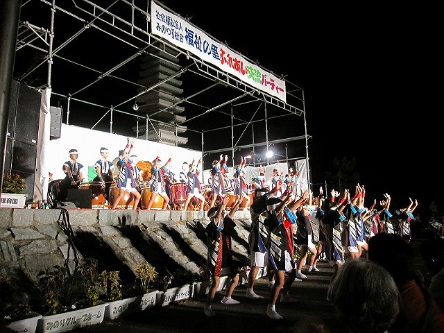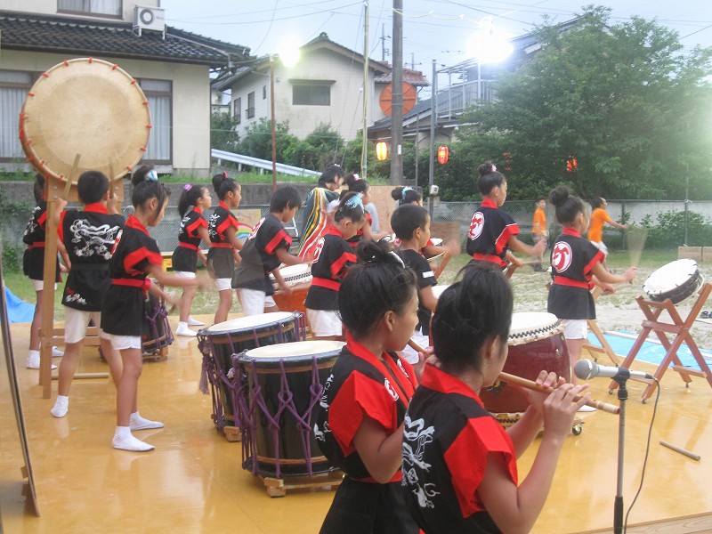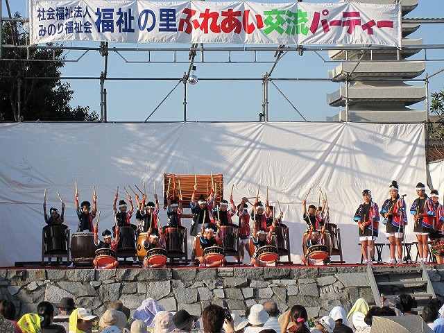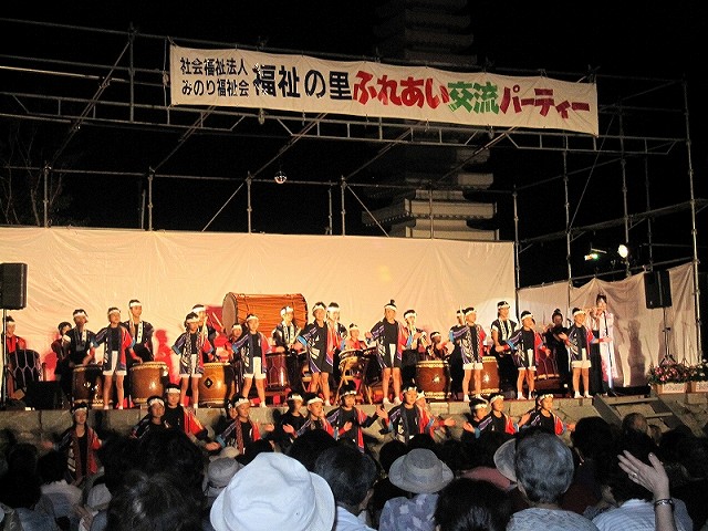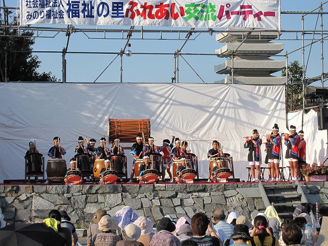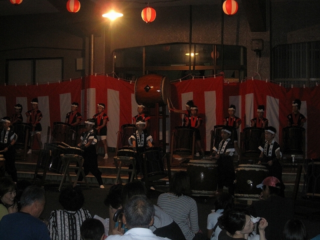 | 2009/08/22 福祉の里交流パーティーで 福祉の里ふれあい交流パーティーで、オープニング演奏をつとめました。 オープニング演奏は、打吹童子ばやし3年未満の団員を中心にした長谷寺組による「長谷寺の絵馬伝説」。 声も出て、落ち着いた演奏ができました。だんだんと上達していますね。 |