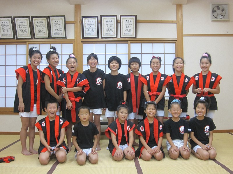 | 2009/08/19 定例練習会 小学生現役チームの定例練習会。 日本のまつりに向けての考え方をみんなにゆっくりと話をしました。 とりあえずは、8月22日の福祉の里まつりで、「日本のまつり」のテスト演奏をする意味・目的を説明しました。 中学生組との合同の演奏。これから現役メンバーがめざしていく演奏の完成度を説明しました。 もちろん中学生組にも頑張ってもらわないと困ります。昨年の全国大会以上に! 小学生組のレギュラーが雷鳴組の演奏するのですから・・・ なんとなく練習するのではなく、「目標を持って練習してもらいたい!」ということを話しながら、どんな演奏をしたら気持ちいいんだろう、限界ギリギリの演奏って・・・ 2006年の発表以来4年。この創作郷土芸能「新・八犬伝」の4年の成長を楽しみにして日本のまつりを誘致してきたこと・・・たくさんの人の思いがそこにあること・・・簡単にはその舞台に立つことができないこと。 打吹童子ばやしが「新・八犬伝」を発表していなかったら、昨年の全国大会も、日本のまつりでの演奏もなかっただろうということ。 5時40分から6時15分までお話をしました。 その後、雷鳴の演奏をしてみました。かっこいい演奏とは・・・人をうならせる演奏とは・・・ 9人の奏者の演奏をみんなで見て、誰がかっこいい演奏をしていたか挙手にて判定しました。 続いて、戦いの章で誰の演奏がかっこいいかを判定しました。 9人の奏者の演奏を見て、かっこいい演奏者5人選んで下さい。→5人で演奏して3人を→3人で演奏して2人を→いよいよ決勝戦。 圧倒的多数で坂井さんが本日のチャンピオンになりました。 日本のまつりでの雷鳴組みんなでもう一度雷鳴を演奏しました。少し胸に届く演奏が見えてきました。素晴らしい演奏です。 みんなが、お互いを高めあういいライバルになれたらいいね。 打吹童子ばやしは、意識の高い元気のいいチームになりつつあります。がんばれ! 続いて、宴の演奏と踊りをしました。→長谷寺の絵馬伝説を演奏しました。 8月22日の福祉の里祭りのオープニングで「長谷寺の絵馬伝説」を演奏します。 「新・八犬伝」は午後7時10分ごろからになります。