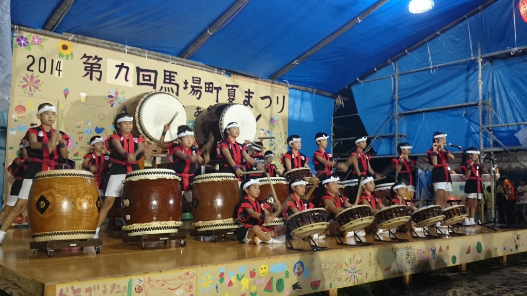 | 2014/08/17 大盛況☆馬場町夏祭り 第9回馬場町夏祭り たくさんの人で賑わいました。 大成功おめでとう。 打吹童子ばやしの子ども達は気持ちの入った演奏をしました。 童子01→長谷寺の絵馬伝説 打吹童子ばやし「天女と童子の物語」を演奏しました。アンコールに応えて、「MATSURI」を手拍子とワッショイの掛け声でお客様と一緒に盛り上がりました。 もちろん、馬場町夢太鼓(今宵限りのスペシャルチーム)も気合の入った素晴らしい演奏をしました。アンコールをいただいて、さらに力強い演奏をしました。 毎年進化していく馬場町夏祭り凄すぎます。霧雨のなか開催された祭りにもかかわらず、入場予定の350番(入場の際に腕にナンバー入り腕輪っかを付けていただきました。)を遥かに超えた来場者になりました。(抽選権利の腕輪っかが無くなってしまいました。ごめんなさい。の場内アナウンスがありました。) 一町内会の祭りの次元を遥かに超えています。 たくさんの方たちの協力があってできることだと思います。凄すぎます。脱帽です。子ども達もとっても活き活きと明るく元気です。 最後の大抽選会は、夜9時を過ぎてもたくさんの人が残っておられました。ちなみに私の腕輪っかのナンバー58番は5等をいただきました。(うれし!) 特賞は15000円の「ミートハウスしょうじ」肉引換券☆これも凄すぎます。(なんとLEGEN童のかなちゃんがゲットしました。・・・馬場町のみなさん申し訳ありません。) 実行委員長さん、実行委員会の皆さん、色んな形で支えられた皆さん、お疲れ様でした。片づけも大変ですが、こんな悪天候の中でも記録更新してしまう馬場町のみなさんのエネルギーに大喝采です。お疲れ様でした。 |