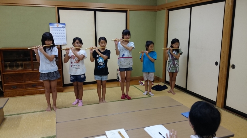 | 2014/08/26 しの笛隊練習会 倉吉の小学生の和太鼓連『打吹童子ばやし』しの笛隊練習会 2014.08.26 まずは、「長谷寺の絵馬伝説」から練習しました。倉吉天女音楽祭では、いちかちゃんがソロを吹きます。 次は、「新・八犬伝」 まずは、「伏姫の章」→「戦いの章」→「祈りの章」→「宴の章」 続いて、「打吹童子ばやし2章」→「打吹童子ばやし3章」を練習しました。 最後に、「長谷寺の絵馬伝説」を全員で吹いて終わりました。 |